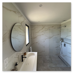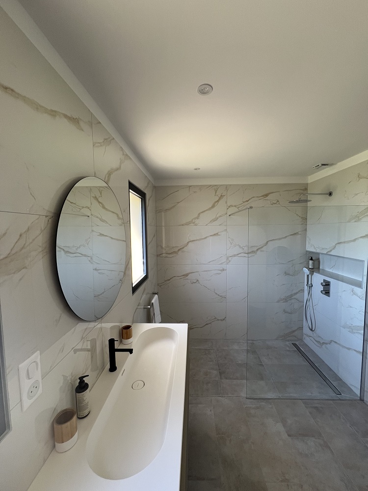 - 1 salle d’eau spacieuse avec grande vasque, douche à l’italienne, toilettes
